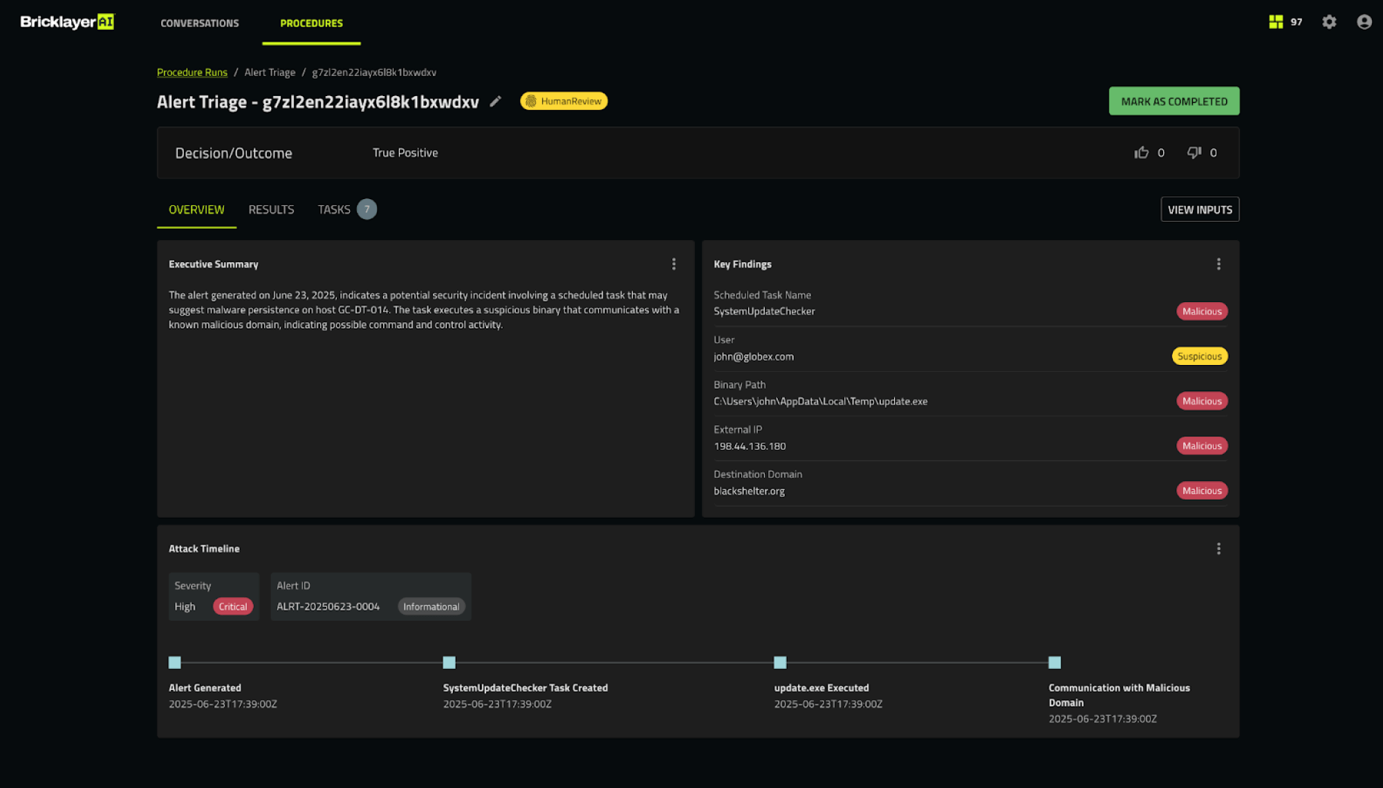 AI-first cybersecurity teams need more than just tasks checked off of a list. They need full transparency into everything that happened, why decisions were made, and where context came from. With this release, Bricklayer AI is now one step closer to completing our mission: