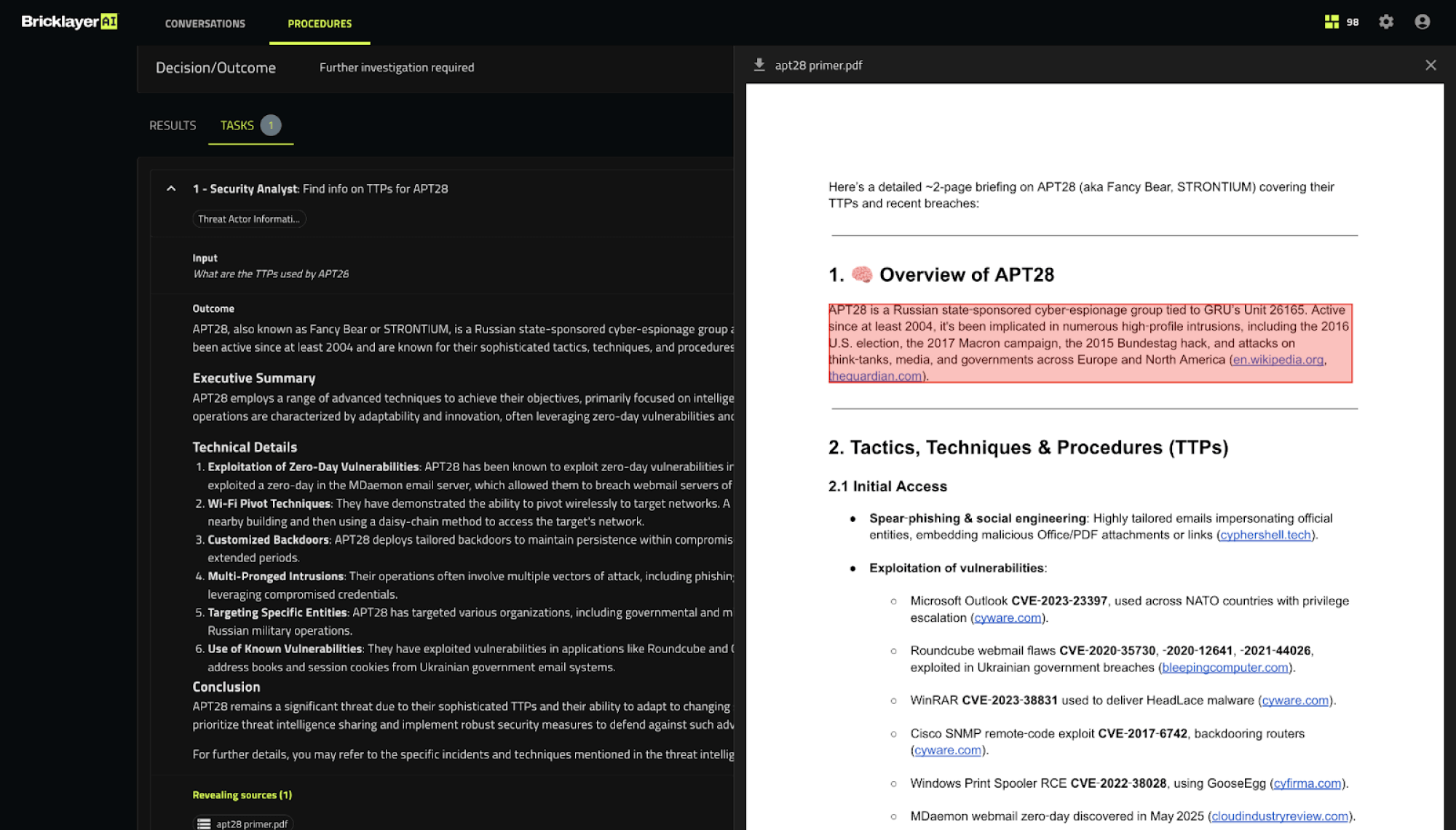 As the cybersecurity landscape continues to get more complex, Bricklayer AI, the Agentic Cybersecurity Platform, today has released two game-changing new features designed to give security leaders full transparency into how their AI Agents operate and make decisions in complex, dynamic environments: Agent Debrief & Source Citations.